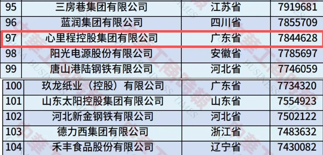 心里程集團榮登2025中國制造業(yè)民營企業(yè)500強第97位