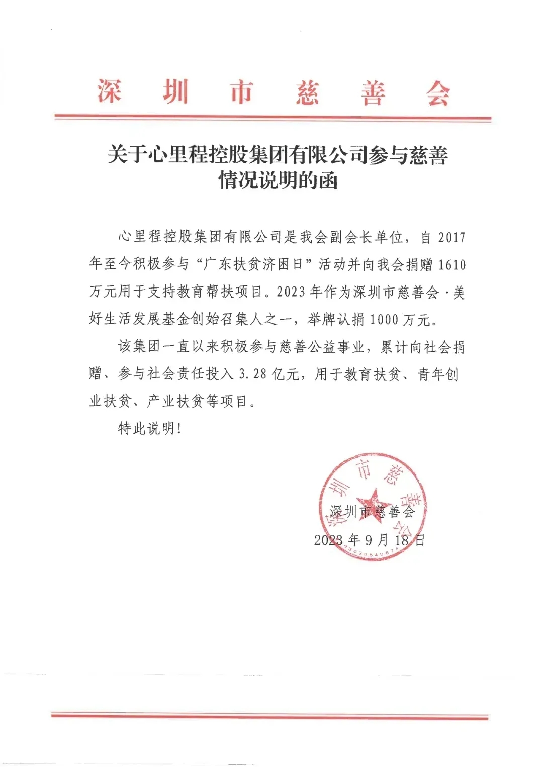 社會責(zé)任方面,心里程集團在發(fā)展企業(yè)的同時,也是積極回饋社會,關(guān)注青少年的教育、成長與創(chuàng)業(yè),積極開展慈善事業(yè)、鄉(xiāng)村振興、志愿服務(wù)關(guān)愛行動等,為實現(xiàn)全體人民的共同富裕貢獻(xiàn)企業(yè)力量。近年來累計向社會捐資超三億元,并多次登榜胡潤慈善榜、福布斯中國慈善榜百強。