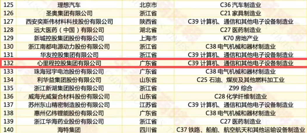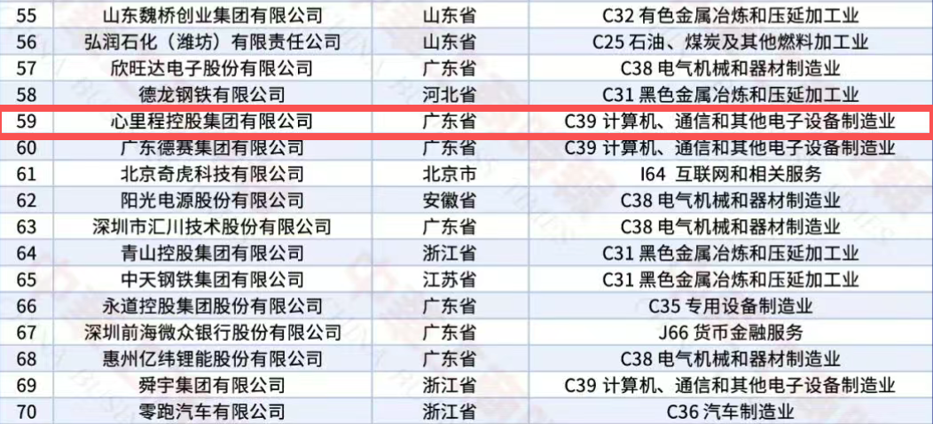 心里程集團(tuán)榮登2025民營(yíng)企業(yè)研發(fā)投入500家第59位